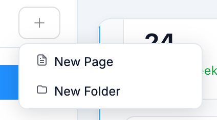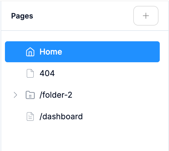 Click the + button at the top of the panel to add a new page or folder.
