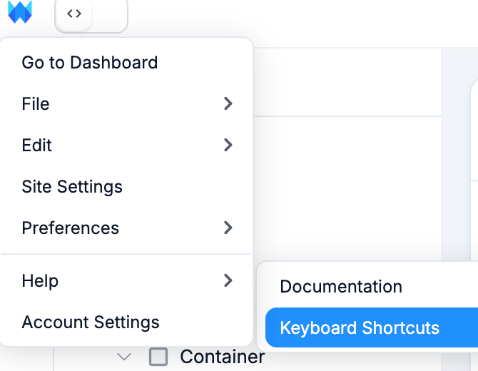 You can view all shortcuts at any time from the logo menu > Help > Keyboard Shortcuts.