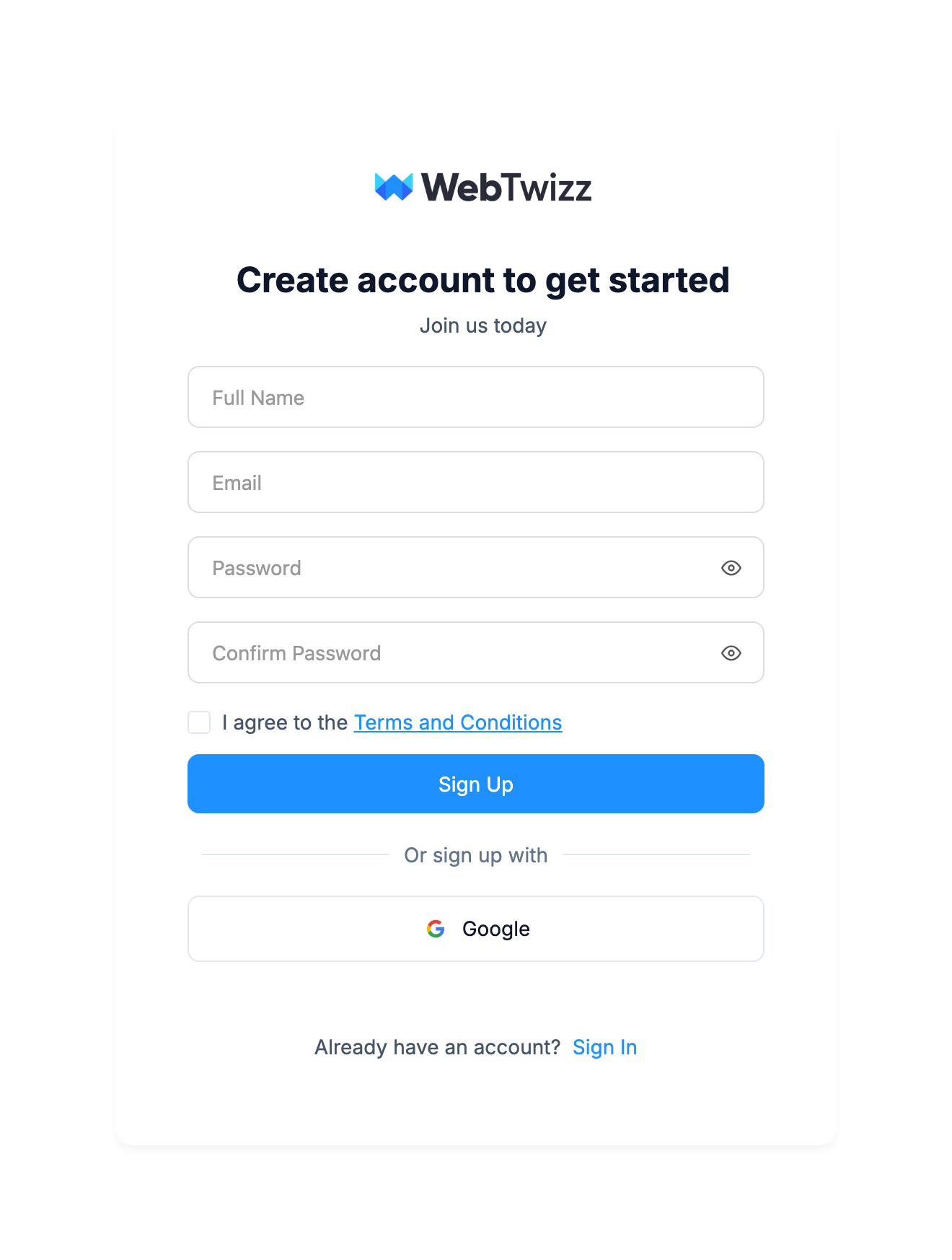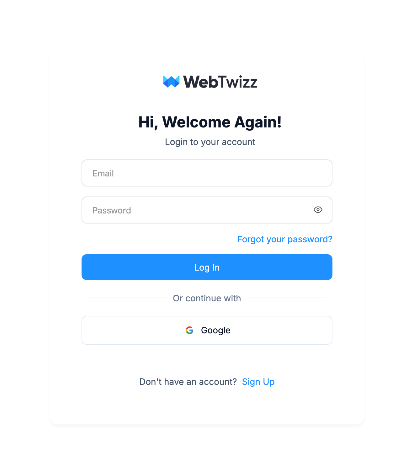 Getting started with Webtwizz takes just a few steps. Here's how to create your account and log in.
