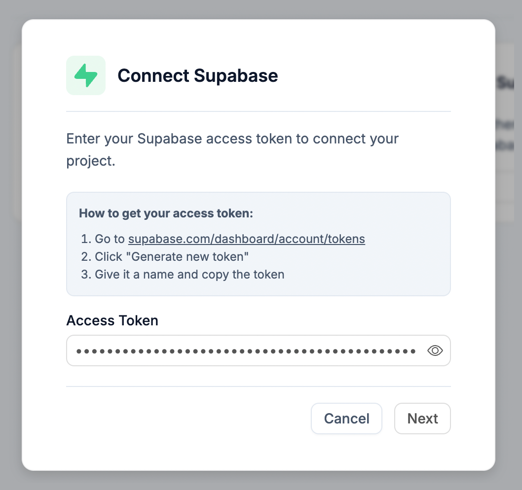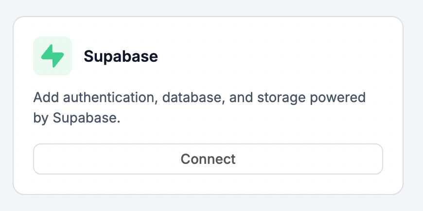 Click Connect to finish. Your Supabase tables will now appear in the Data & CMS panel under the Supabase tab.